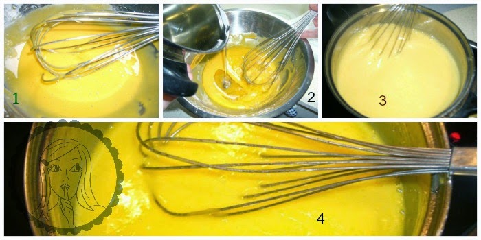 Pasamos la mezcla a un cazo (puedes usar el mismo que usaste para hacer el jarabe, no hace falte que lo laves) y lo ponemos al fuego hasta que empiece a querer hervir sin dejar de remover para que no se formen grumos; ten mucho cuidado porque si te salpica esta mezcla quema (y mucho por el azúcar que lleva :o ). Si te queda algún grumo puedes usar un calador para pasar la yema una vez hecha y así los grumos se quedarán en él.
