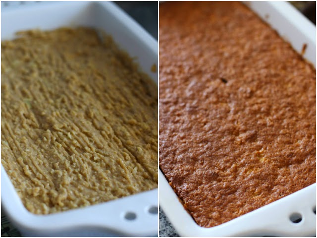 Verter la mezcla en un recipiente de aprox 20x30 cm y esparcir homogéneamente.