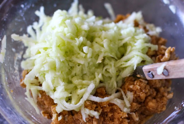 Finalmente agregar ½ taza de nueces picadas, 1 manzana rallada y mezclar todo muy bien.