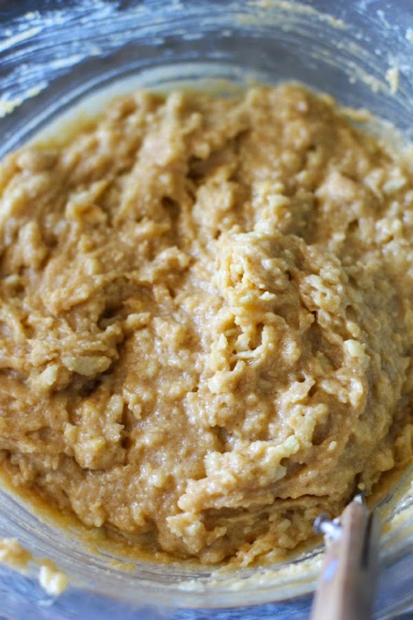 Agregar la mezcla de mantequilla y azúcar al bowl y revolver hasta lograr una consistencia pastosa.