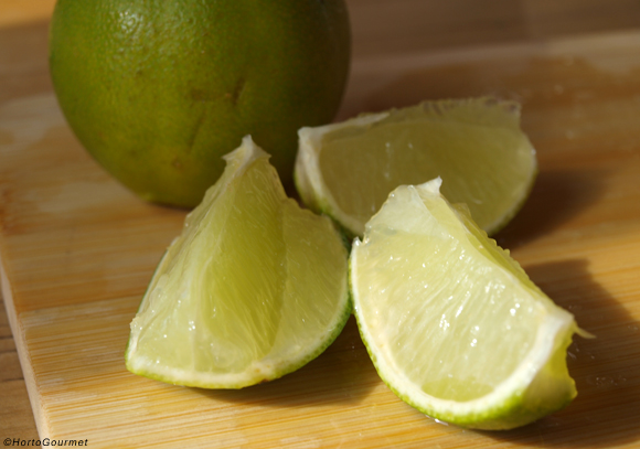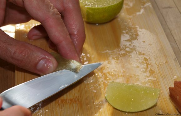 A continuación, cortamos la lima en pequeños trozos o gajos, como los de la foto.