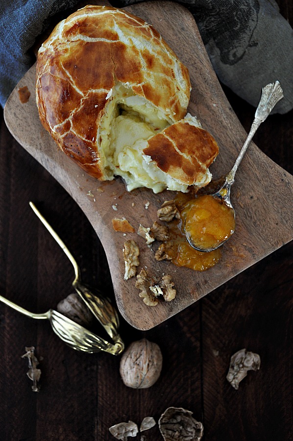 - Ponga en el centro el queso y envuélvalo en el hojaldre, apretando bien para que quede bien sellado.