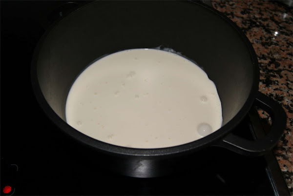 50 g de cacao en polvo Ponemos a calentar la nata (crema de leche) en un cazo a fuego medio. Es importante que vigilemos que la nata (crema de leche) no suba, sino solamente que coja temperatura. Cuando veamos que empieza a salir alguna burbuja, lo tendremos que retirar del fuego.