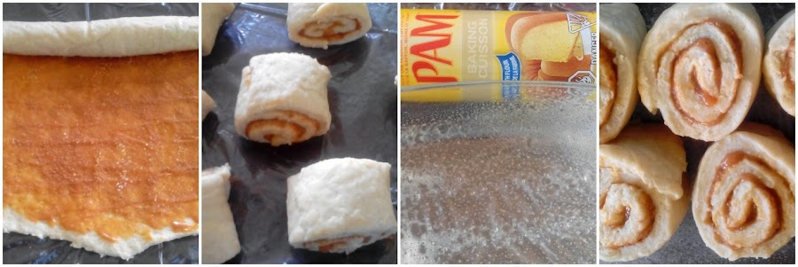 Ahora enrollamos a lo largo y lo cortamos en porciones del tamaño deseado, yo los corté de 3 cm. Engrasamos el molde donde los pondremos y los colocamos dejando espacio entre ellos ya que creceran.