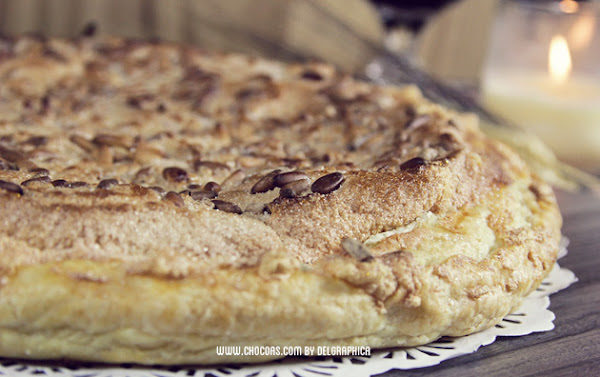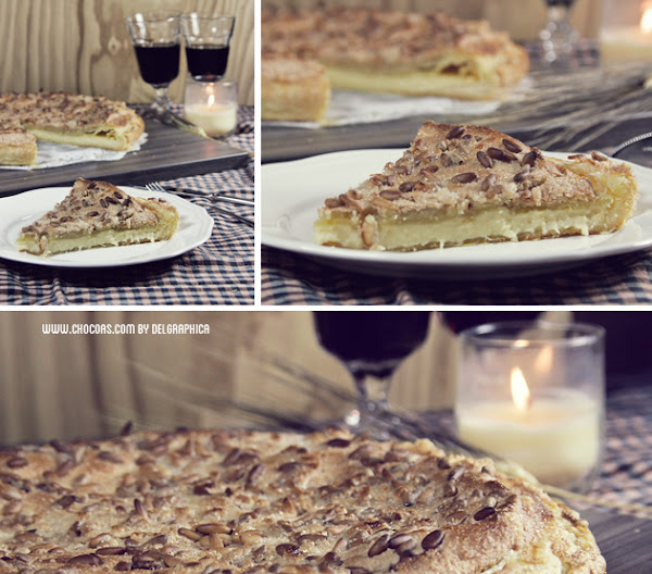 Hornear unos 35-40 minutos. Cuando veáis que la superficie está muy tostada cubrid la coca con un papel de aluminio y seguid horneando. Así se cocerá el hojaldre pero no se quemará la parte superior de la coca.