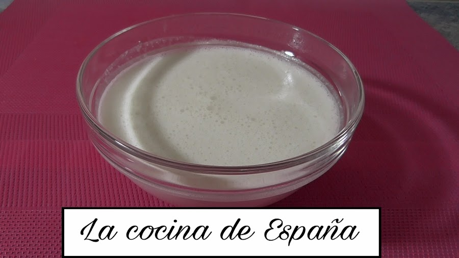 Cuando se a batido bien vamos echando el aceite de oliva poco a poco mientras se esta batiendo, tiene que emulsionar como si fuera una mayonesa, a continuación lo que hacemos es echar el agua restante, que ya depende de como te guste la consistencia, puedes echar todo el agua o no.