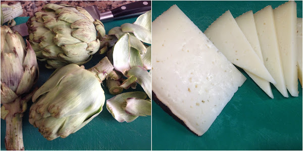 En algunos países de latinoamérica la alcachofa se llama alcaucil y buscando en internet qué preparar, encontré esta receta de alcauciles gratinados que me pareció divineeeee...El queso Idiazábal es de leche de oveja que se elabora en el País Vasco y en Navarra, pero Elena dijo que podíamos utilizar cualquier queso de oveja.