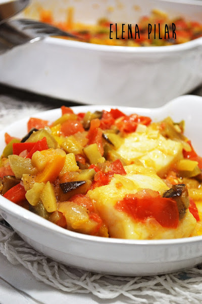 O lo que es lo mismo, bacalao con verduritas. La samfaina es una elaboración de origen catalán, elaborada a base de tomate, berenjena y pimiento. Una especie de pisto que le va fenomenal al bacalao.