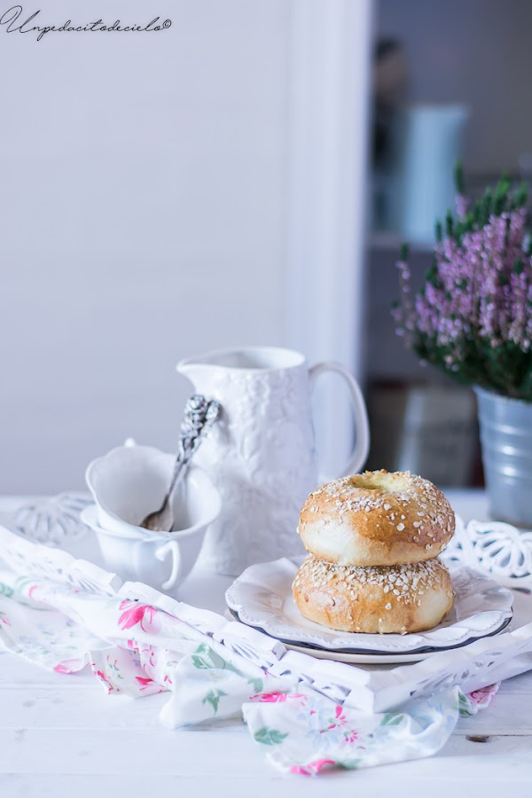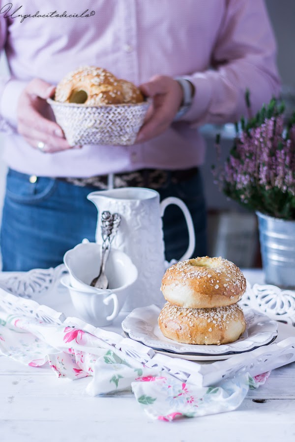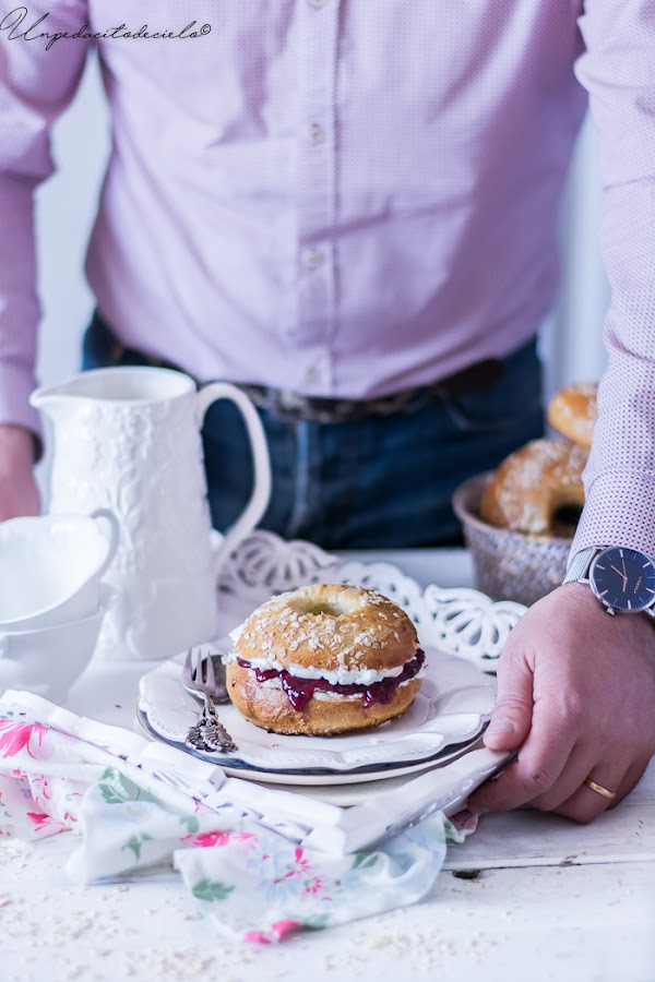 Los Bagels los hice yo, porque a mi maridín le adornan muchas virtudes, pero muchas, pero no fue bendecido con el don de la cocina.