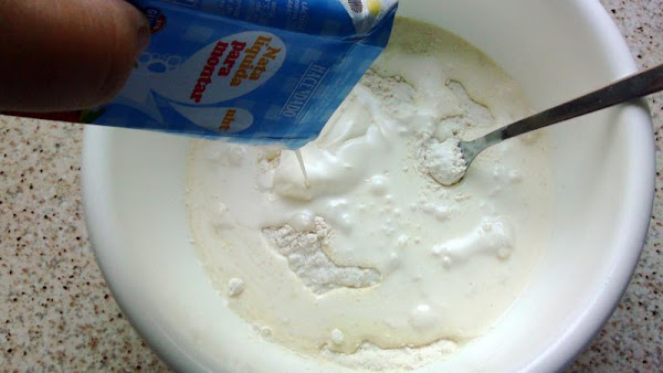 Con unas varillas (batidor) mezclar bien para airear la harina y homogeneizar.