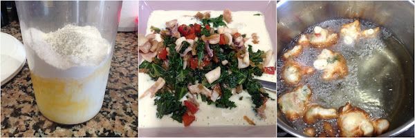 Dándole vueltas a ver qué podía preparar o cómo podía casar los ingredientes, mientras estaba haciendo estos buñuelos se hizo la luz y se me ocurrió elaborar buñuelos de kale y calamar...