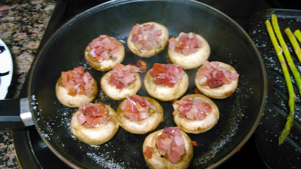Entre inducciones, porque ahora ya lo de los fogones es difícil de ver, Preparamos unos champiñones con jamón.