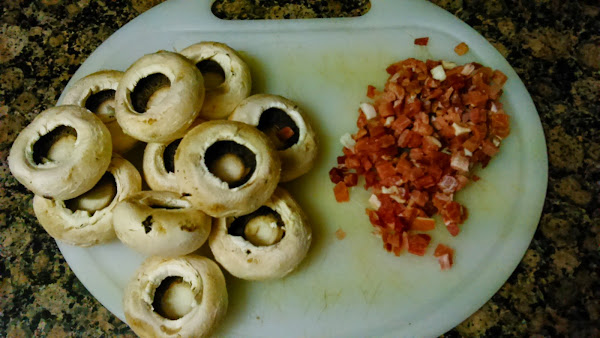 Ponemos los champiñones con el hueco que nos ha dejado el rabo hacia arriba