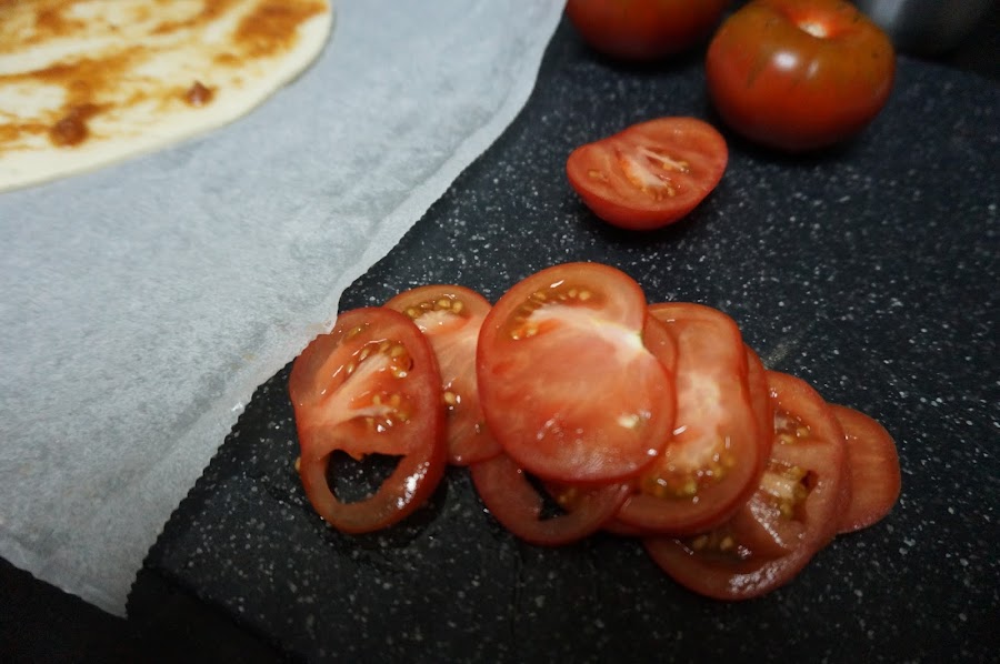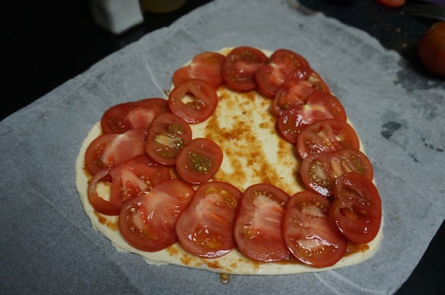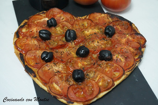 Con los tomates más maduros preparé esta coca que quedo deliciosa, se nota el buen sabor del tomate y con el resto una buena ensalada.