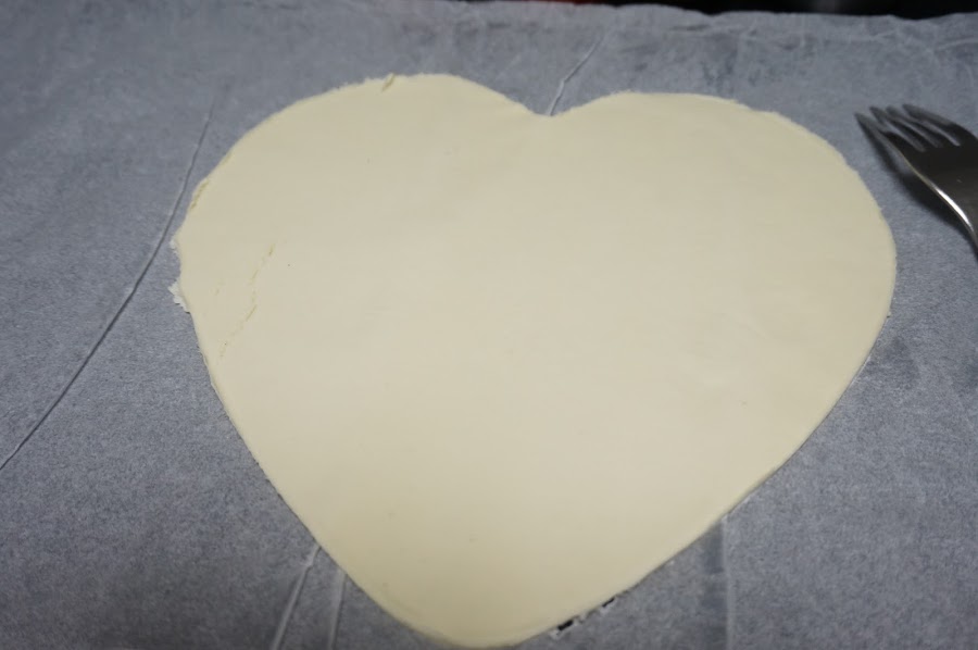 Primero nos haremos con un molde en forma de corazón, cortaremos uno grande o podemos hacerlos más pequeños individuales.