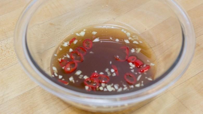 Lo primero que debes hacer es precalentar el horno a 425 grados. Mientras tanto debes mezclar en un tazón mediano la salsa de pescado, el vinagre, el jugo de limón, el azúcar, el ajo y el pimiento. Debes revolver hasta que el azúcar se disuelva por completo.