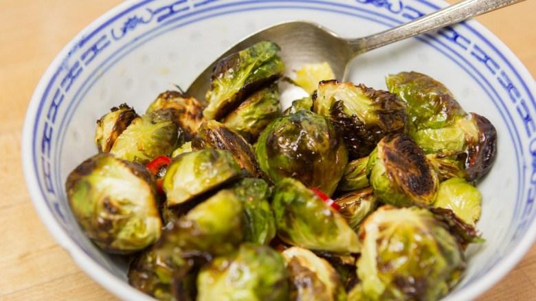 Para finalizar, agrega mezcla en un recipiente las coles de bruselas con la salsa de pescado y sirve inmediatamente.