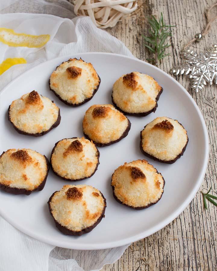 Los coquitos son un dulce un tanto graso al llevar coco y para que la receta sea más ligera he utilizado solo claras de huevo y he reducido la cantidad de azúcar. ¡Han quedado igual de bien que siempre! Además este año los he mojado en chocolate negro y ha sido todo un acierto.