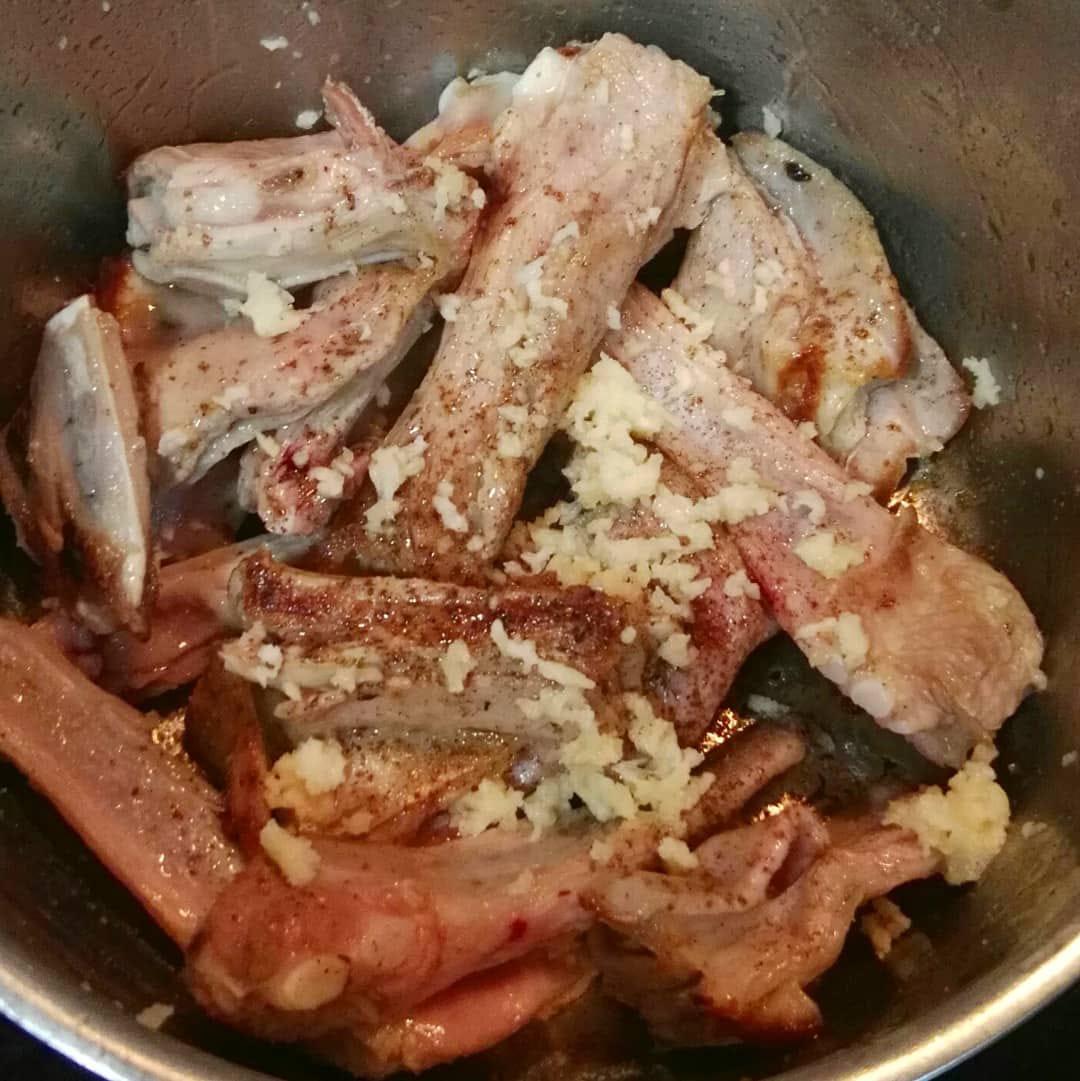Si os fijáis en la foto de la cazuela se puede ver como el ajo ha quedado esparcido por toda la carne sin tener que remover si quiera!