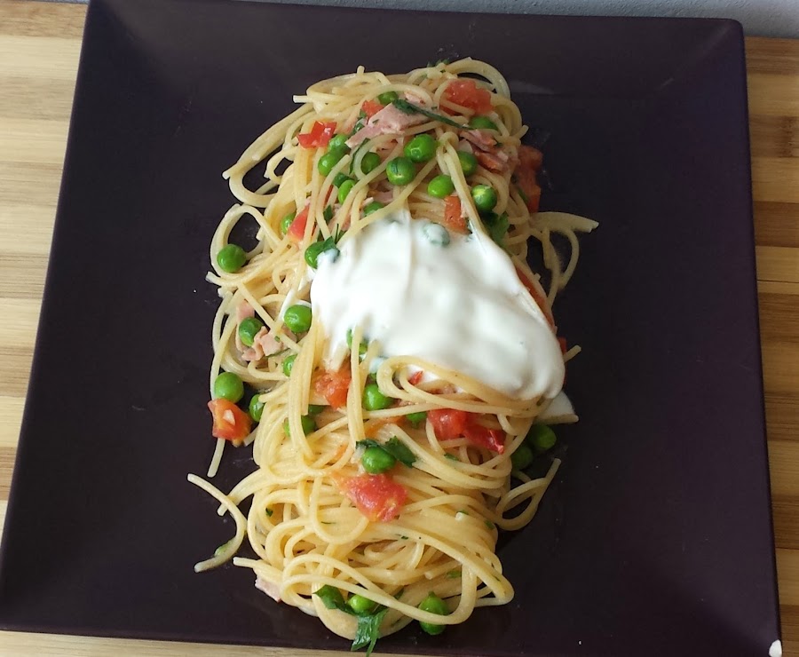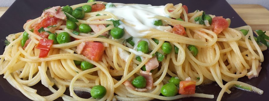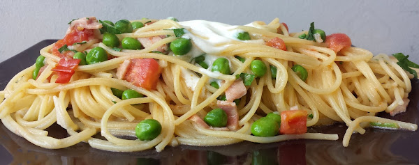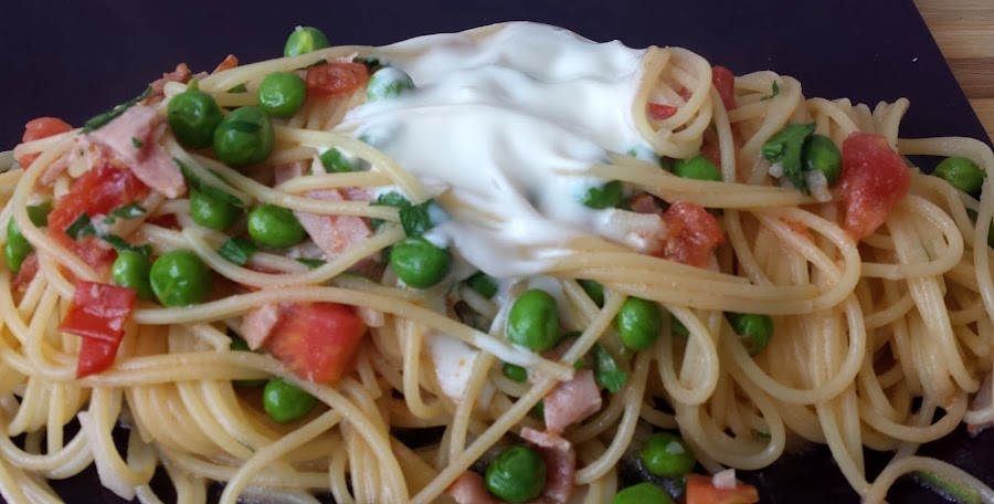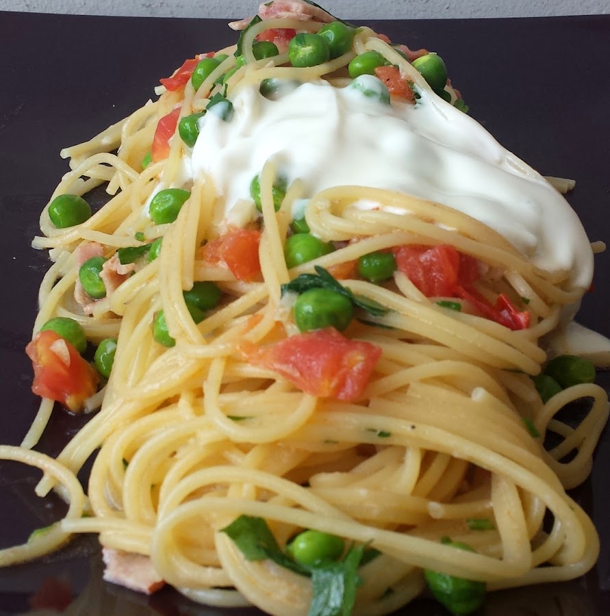 En esta ocasión os he preparado unos riquisimos Espaguetis con Guisantes Frescos y Yogurt, con lo que obtendremos un magnifico plato equilibrado que nos aportará la ración diaria recomendada de frutas y verduras, además de aportarnos una buena dosis de energía en forma de carbohidratos.Información nutricional por Ración:
