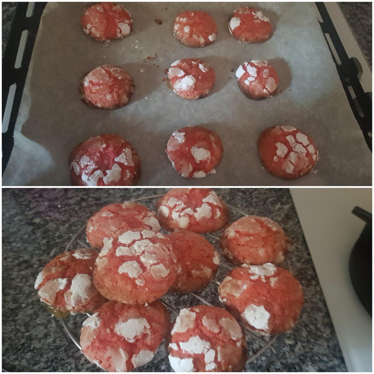Hornear Hornamos a 180ºC con calor arriba y abajo durante +/- 15 minutos o hasta que estén a vuestro gusto. Sacar la bandeja del horno y dejar enfriar un poco en la bandeja, antes de pasarla a una rejilla. En calientes están muy blanditas y se pueden romper, hay que esperar a que enfríen antes de manipularlas.