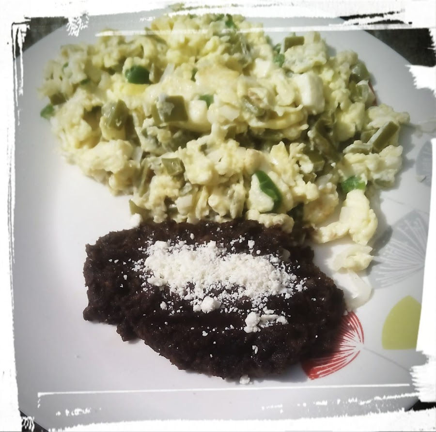 Agregar la mezcla de huevo con nopales y mover para que se cocinen. Cuando estén cocinados apagarle al fuego.