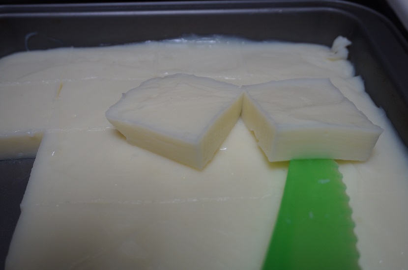 Pasado este tiempo lo sacamos y lo cortaremos en trozos cuadrados.