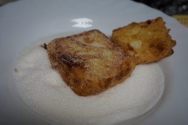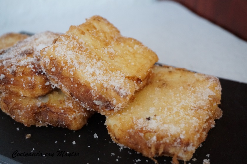Tendremos preparado un plato con azúcar y canela, rebozaremos los trozos.
