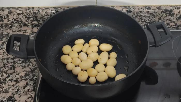 También podemos dorar durante unos minutos unas cuantas patatitas, de las precocidas de guarnición.