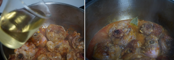Añadimos el vino blanco, lo dejamos reducir un par de minutos el alcohol.