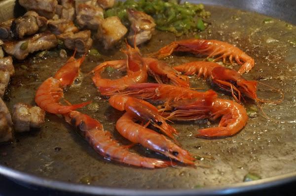 Lo sacamos y reservamos en un plato, se doran las gambas y las reservamos con la sepia.