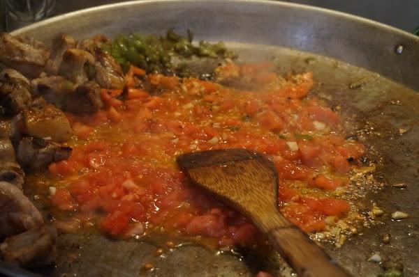 Y cuando veamos que empieza a tomar color echaremos el tomate picado, sin piel.