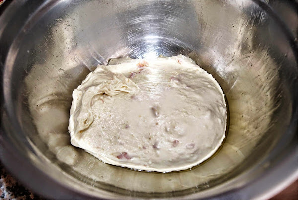 Formamos una bola y dejamos que leve en un bol que habremos engrasado un poco. Cubrimos con una lámina de film hasta que la masa doble su volumen.