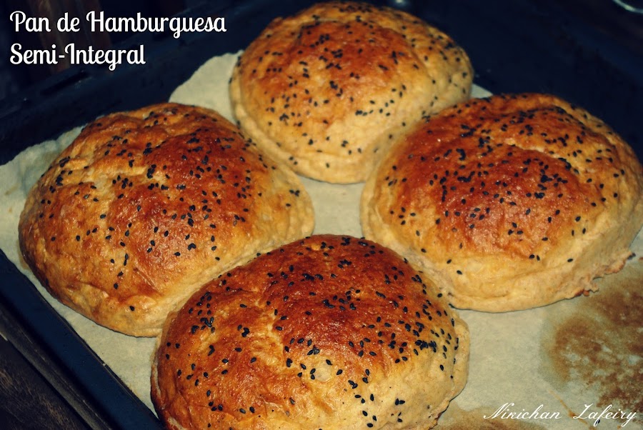 Hoy vamos a preparar unos bollos para pan de hamburguesa. Hace tiempo que tenía ganas de preparar este pan y la verdad es que fue difícil decidirme por uno, hay muchos tipos distintos. Este en concreto se parece mucho al pan esponjoso y tierno de los supermercados, sin corteza.. con una capa dorada muy fina por en cima y resistente a los ingredientes, no se rompe.Yo le puse un poco de harina integral pero se puede hacer normal.