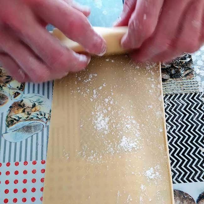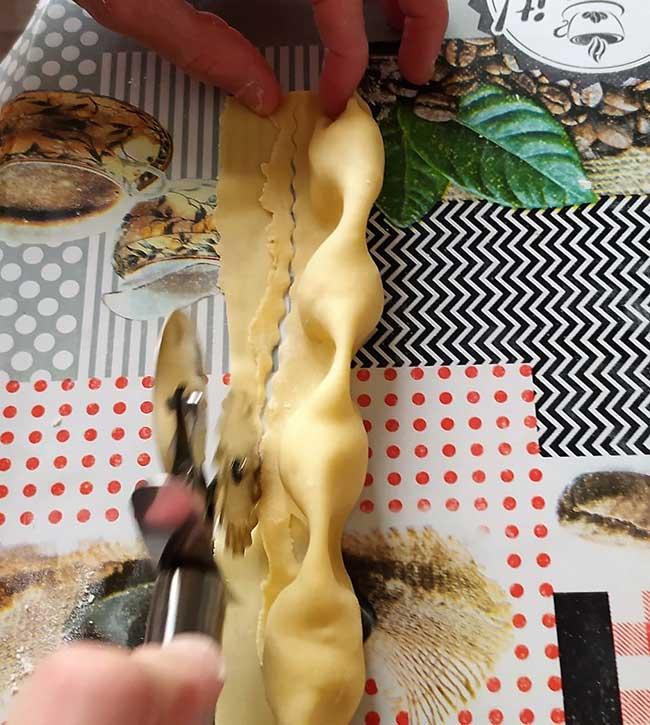 Una vez estirada la masa procedemos a cortarla según las necesidades. Este tipo de masa nos servirá tanto para espaguetis y tallarines, como para pastas rellenas o lasañas.