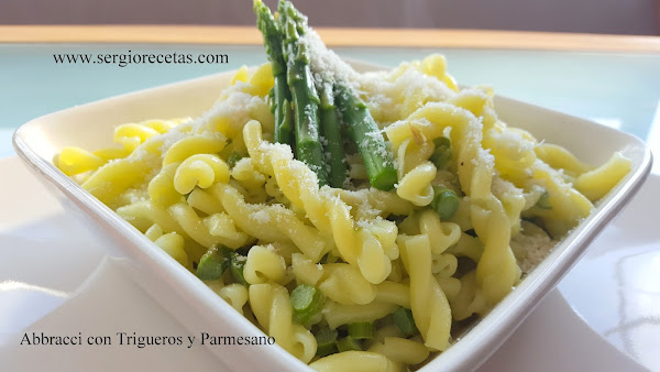 Los "Abbracci" son una especie de espirales más largos que un macarrón pero perfectos para introducir en salsas ya que por su forma llevan esta a todas sus partes quedandose bien impregnados del sabor que queramos introducir. En este caso un potente y muy rico sabor a Triguero.