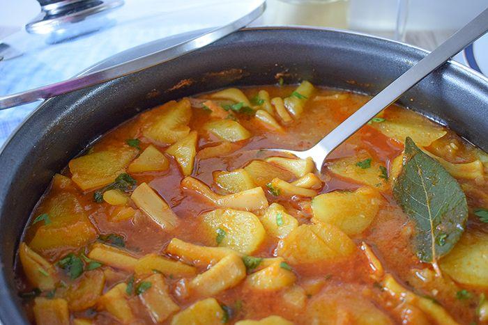 Hoy cocinamos patatas con calamares, un guiso tradicional sencillo y de los de repetir, ya que el sabor que deja el calamar en el caldo, combinado con las patatas, es una auténtica delicia.