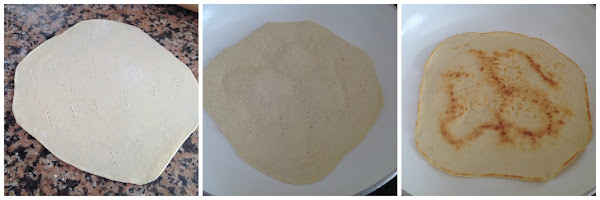 Estiramos cada pieza de masa con rodillo dejándola bien finita, la pinchamos con un tenedor y la cocinamos en una sartén muy caliente, sin añadir aceite, ni ningún tipo de grasa. Cuando comienza a dorarse le damos la vuelta y cocinamos del otro lado. Se cocinan muy rápido. Las vamos apilando sobre un plato para que no se resequen.