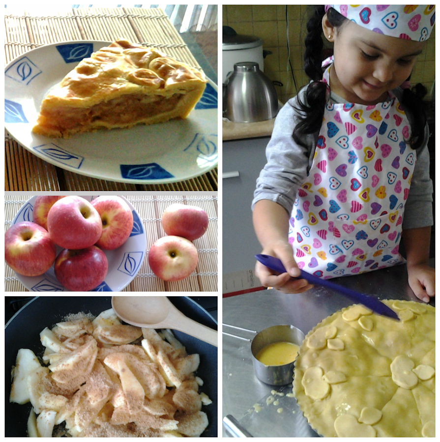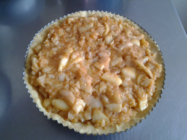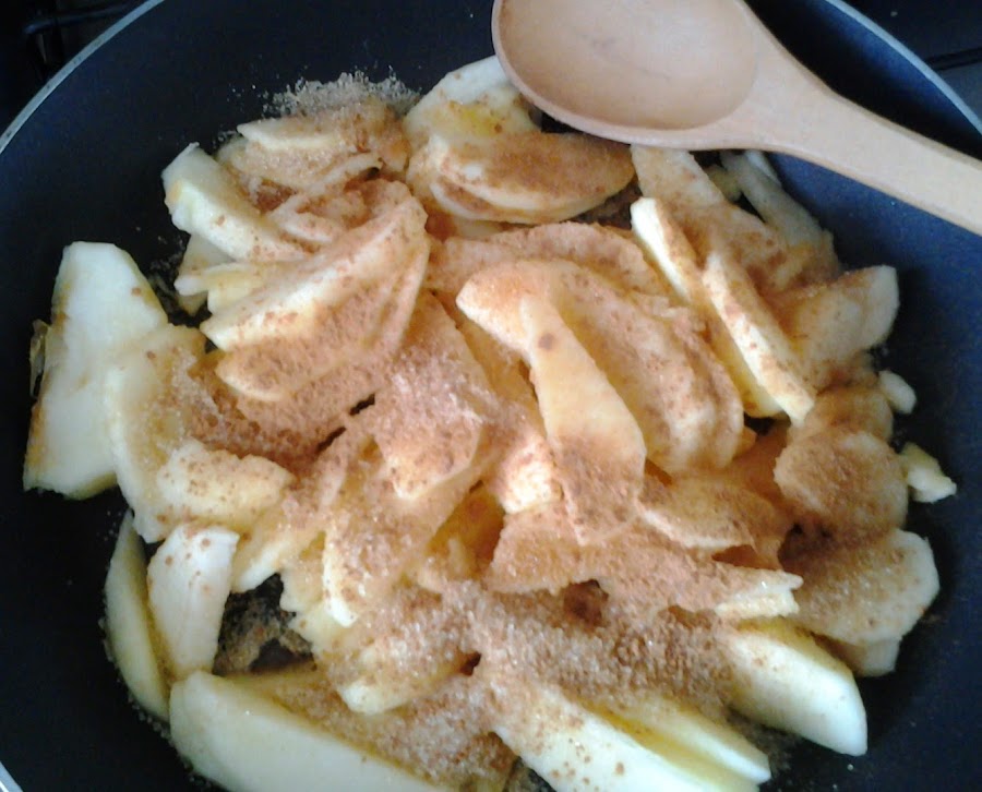 y saltear en una sartén con azúcar, mantequilla y canela molida , espolvorearle la harina y por último agregar el jugo de un limón .Reservar la mitad de las manzanas salteadas y procesar o triturar un poco la otra mitad de las manzanas para obtener un puré rústico