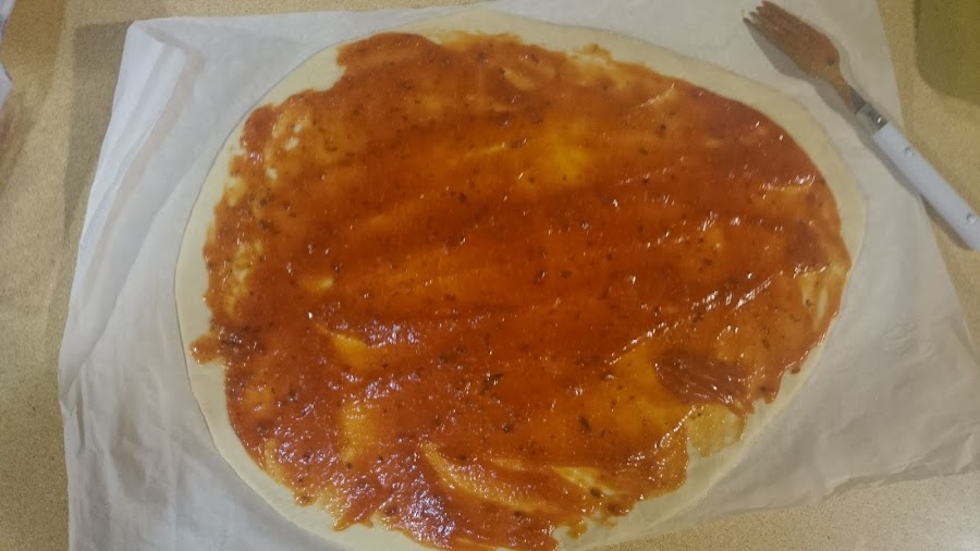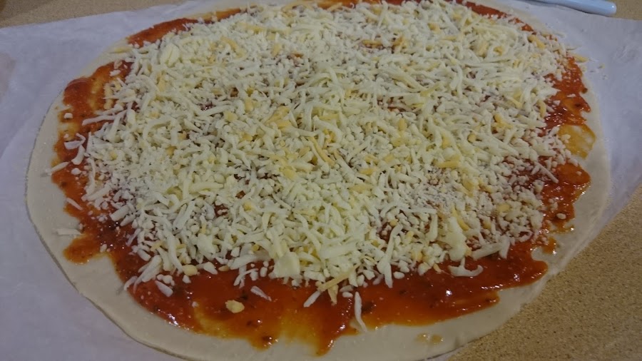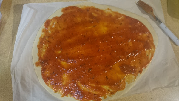 Tomate para pizza o tomate triturado, escurrido con orégano y sal.