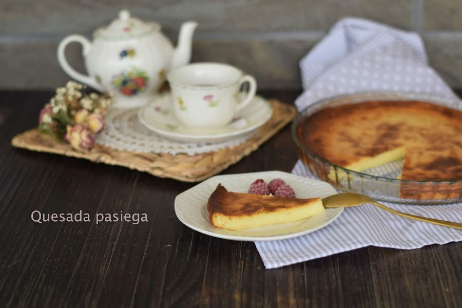 No tenemos la leche recién ordeñada del valle del Pas de Cantabria ni su rico requesón pero nos ha quedado una quesada de escándalo jajajaj es que no tengo abuela.