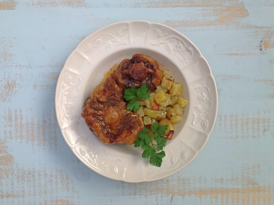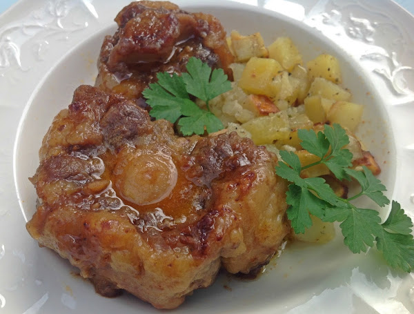 Antonio cuenta que es un plato típico de Córdoba, España, y que la receta tiene su orígen sobre el siglo XVI.Se elabora con vino blanco aunque yo he comido varias veces la versión preparada por mi madre, en Argentina y ella lo hacía con vino tinto y pasaba la carne cruda por harina antes de poner a dorar. Confieso que con los dos vinos queda fantástica. Un plato cocido a fuego lento, durante 2 o 3 horas y que dá como resultado un delicioso estofado.