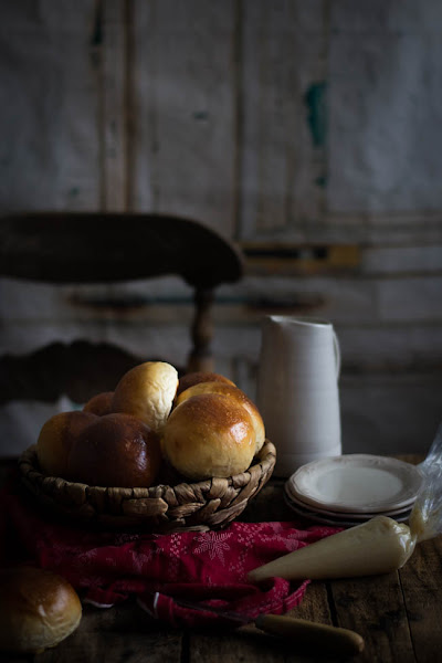 Tienen un sabor a cardamomo que lo hacen delicioso y la combinación con la pasta de almendra y la nata (crema de leche) es sensacional y mojaditos en leche caliente entra estupendamente con estos frio invernales que tenemos ya por aquí.
