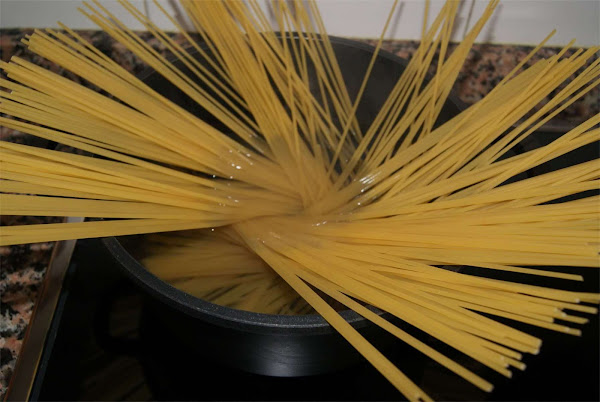 Sal Ponemos a calentar una cacerola con abundante agua y sal. Cuando empiece a hervir metemos los spaguetti y los cocemos el tiempo que indique el fabricante en el paquete.