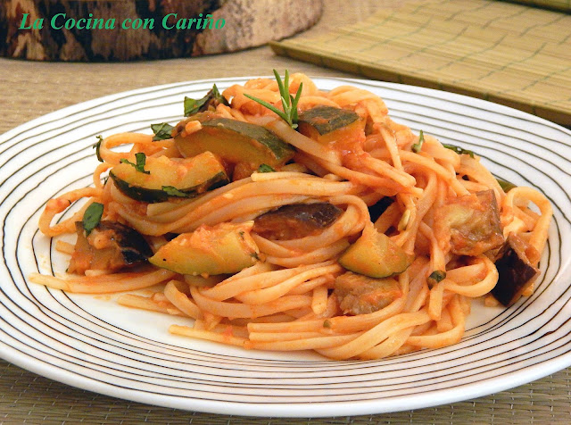 Ponemos la pasta en la olla y dejamos cocer 1 minuto menos de lo que diga el paquete. Removemos de vez en cuando para evitar que se nos pegue y cuando apaguemos el fuego, dejamos reposar 2 minutos en la olla. Nos saldrá la pasta prefecta. Escurrimos y mezclamos con el pisto. Si vemos que la salsa ha quedado muy densa, añadimos 3 ó 4 cucharadas del agua de cocción y listo, platazo. Muy, muy fácil, No puedo decir más que a ser todo lo felices que podáis, y en estas fechas difíciles aún más.