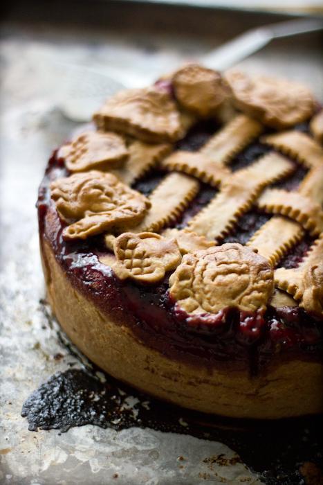 Extendemos la crema de queso de manera uniforme en la parte inferior de la tarta y luego vertemos las moras en la parte superior. Se quita la corteza extra, dejando cerca de 2 dedos de la corteza exterior del relleno. Dobla los 2 dedos de la corteza hacia atrás sobre la parte superior del pastel. Para los adornos, cogemos masa que nos haya sobrado y extendemos, luego cortamos las formas decorativas o tiras que deseamos poner en la tarta.