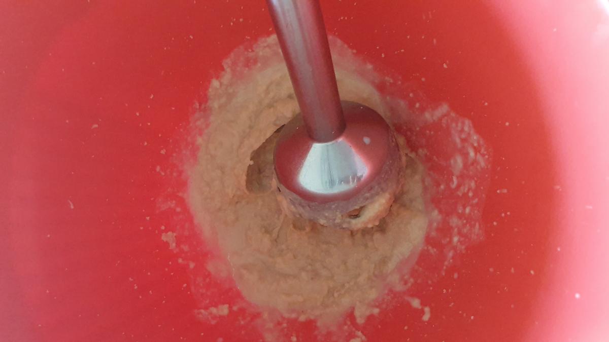 1.Precalentar el horno. Con una minipimer moler los garbanzos junto con la leche y el aceite (si usan coco tiene que estar derretido) Hasta lograr un puré. Batir suavemente el huevo y agregar.