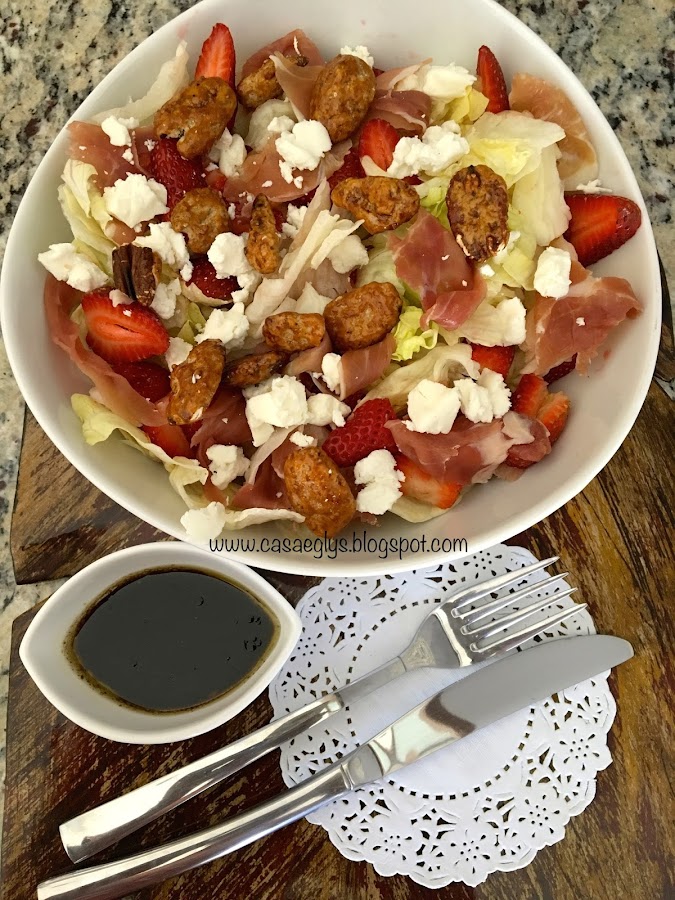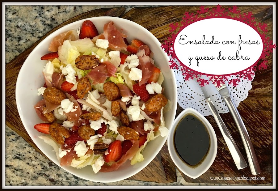 4.- Coloca todos los ingrediente en un plato tipo ensaladera y desmenuza el queso de cabra por encima.