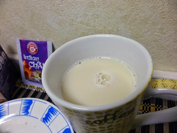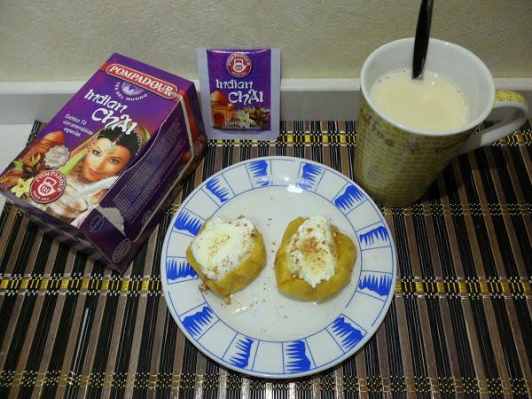 -Ideal acompañarlo de un té chai Pompadour (de la caja Degustabox de febrero) infusionado en leche... que está más que riquísimo, y no necesita ni azúcar, porque la leche le da el dulzor que necesitamos.