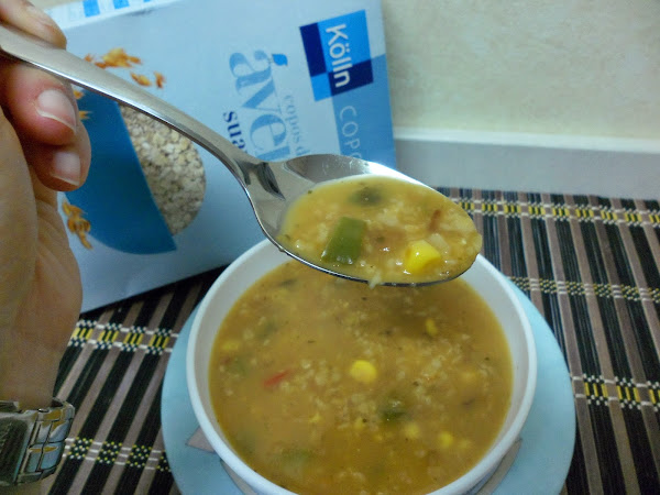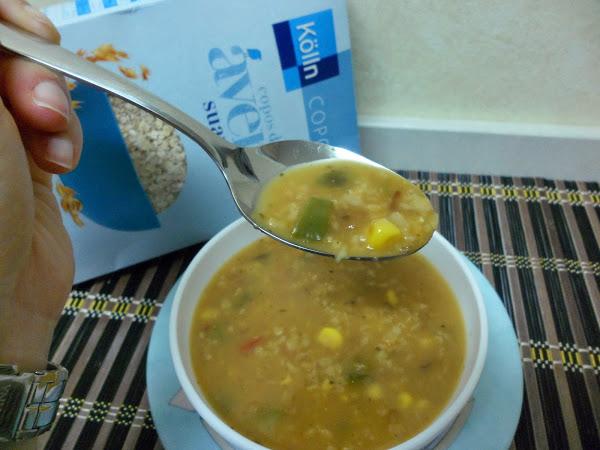-Realmente no me cansaré de repetir, después de haber probado esta sopa, que me alegro de haberme decidido a probar los copos de avena en un plato salado. Me ha gustado más así que en un muesli acompañando un yogur.